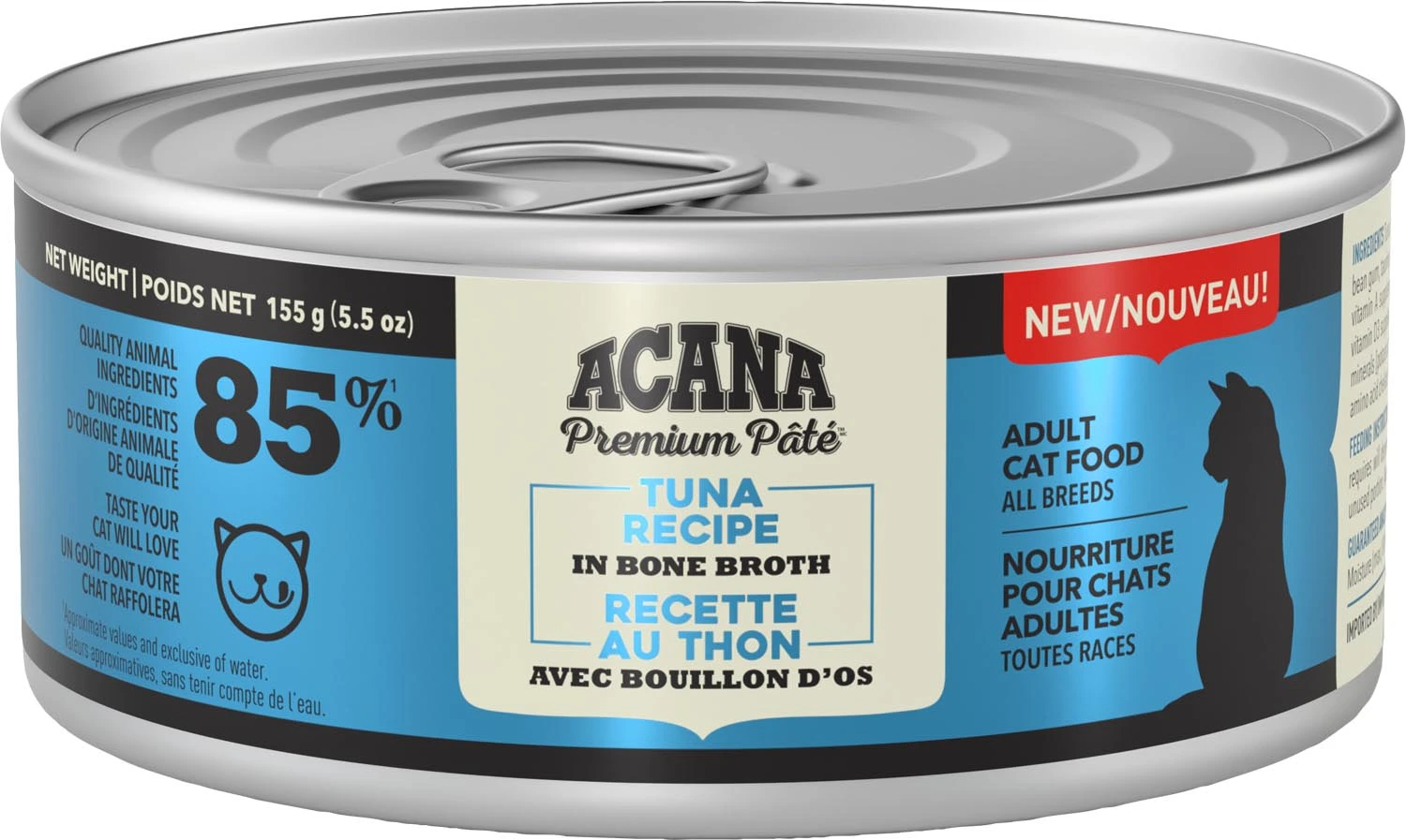 Tuna, chicken, chicken bone broth, fish bone broth, chicken liver, pumpkin, salmon oil, locust bean gum, taurine, tricalcium phosphate, salt, vitamins [vitamin E supplement, thiamine mononitrate, niacin, vitamin A supplement, pyridoxine hydrochloride, calcium pantothenate, riboflavin supplement, folic acid, vitamin D3 supplement, biotin, vitamin B12 supplement, menadione sodium bisulfite complex], guar gum, minerals [potassium chloride, magnesium sulfate, zinc amino acid chelate, iron amino acid chelate, copper amino acid chelate, manganese amino acid chelate, sodium selenite, potassium iodide], choline chloride.