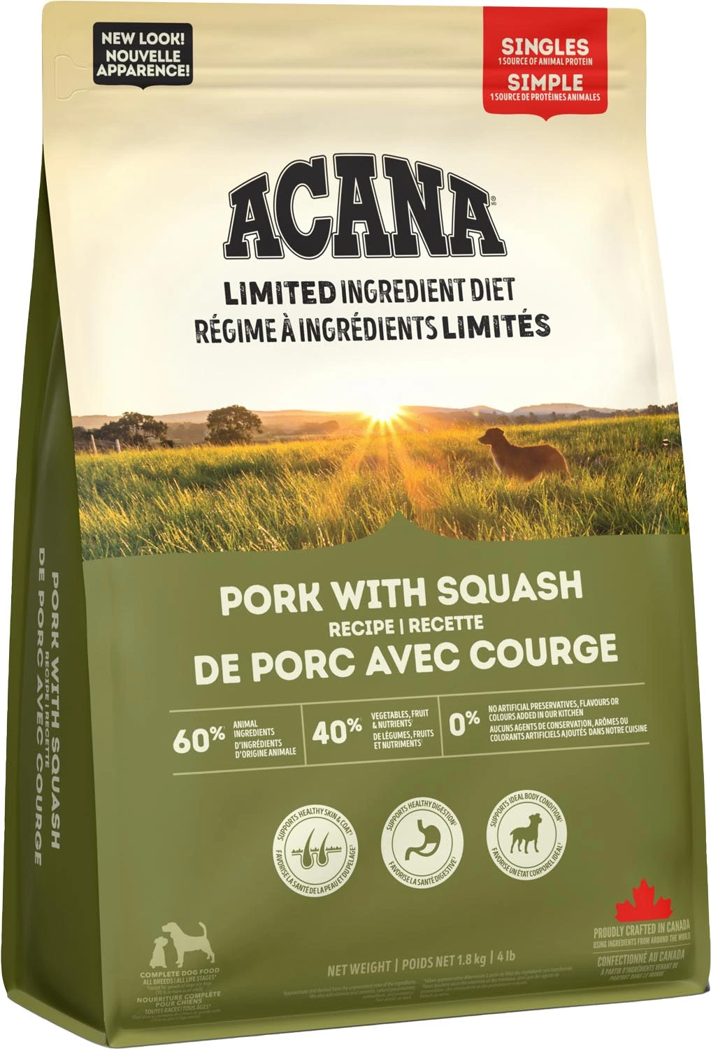 Raw pork (17%), pork meal (17%), raw pork liver (17%), whole chickpeas, whole lentils, pork fat (7%), fresh whole butternut squash (4%), dehydrated sweet potato (4%), lentil fibre, fish oil (2%), dried kelp, salt, fresh whole pumpkin, dried chicory root, whole cranberries, whole blueberries, turmeric, milk thistle, burdock root, lavender, marshmallow root, rosehips.