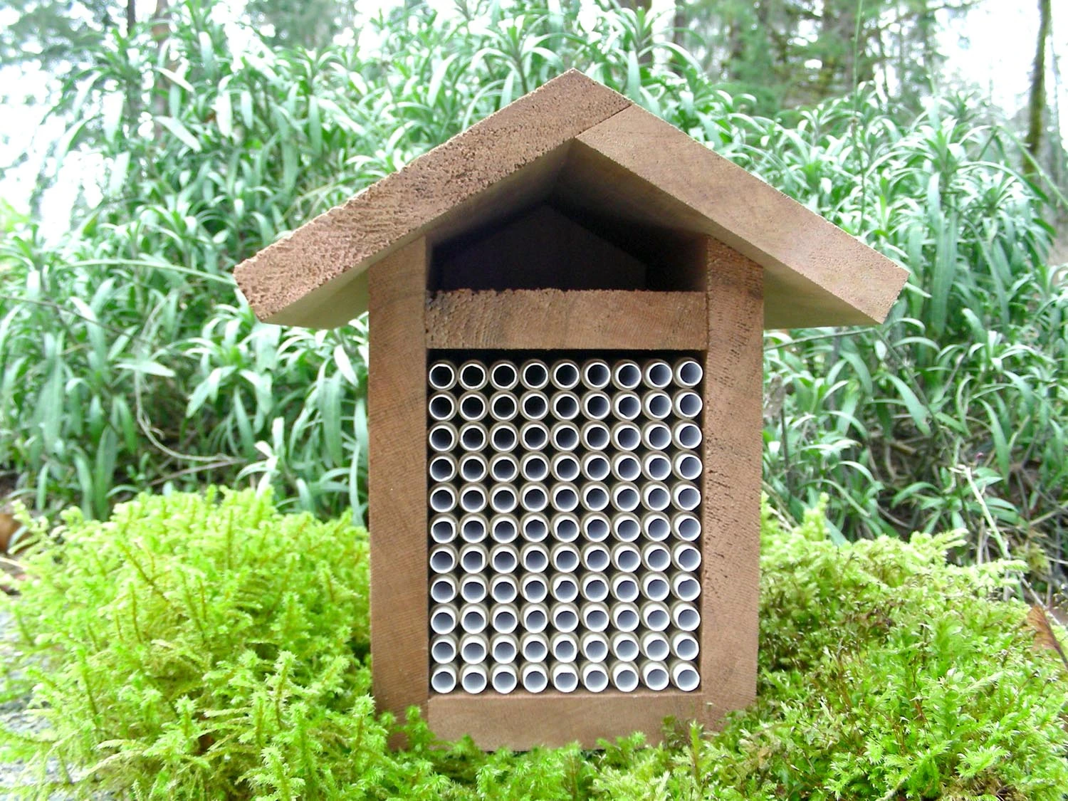This Bee House is made of salvaged Western Red Cedar, it can be attached to the side of your house, shed or fence to provide habitat for Mason and Leafcutter bees.