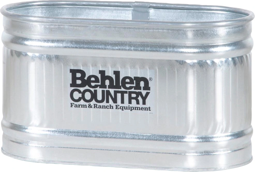 The Behlen Country Galvanized Stock tanks are ideal for all your livestock watering needs. Built to endure the most severe farm and ranch conditions. Corrosion resistant, heavy zinc coating assures long life. Rigid sidewalls have both ribs and corrugations for maximum strength. Heavy galvanized tank bottoms (20 ga.). Heavy, reinforced steel tube rolled into the top lip for added strength and durability.