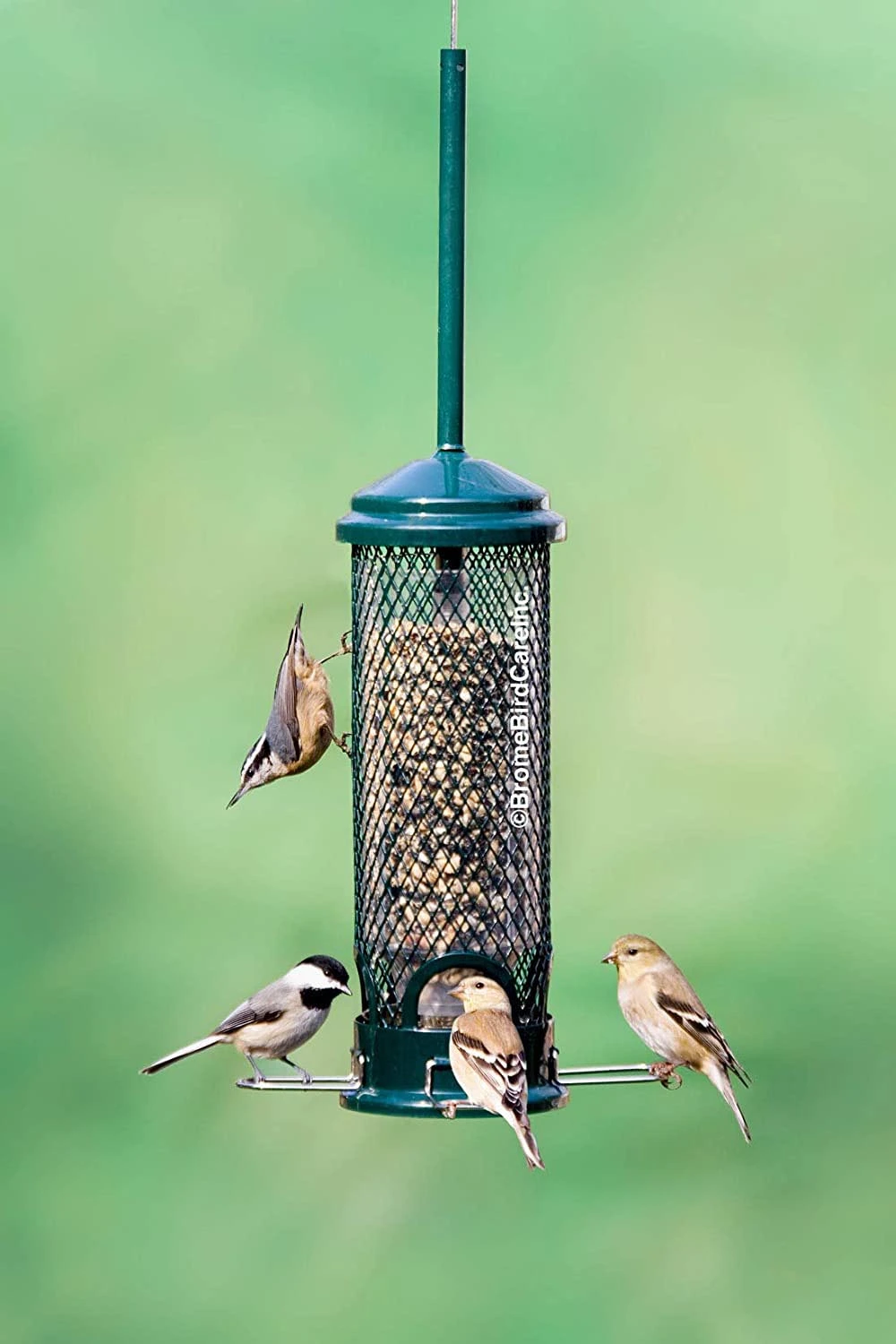 A welcome choice for bird lovers, the squirrel-proof bird feeder attracts a wide variety of clinging and perching birds including American Gold Finches, Chickadees, Hairy Woodpeckers, Cardinals, Indigo Buntings, Rose-Breasted Grosbeaks, White-Breasted Nuthatches, and Purple Finches.