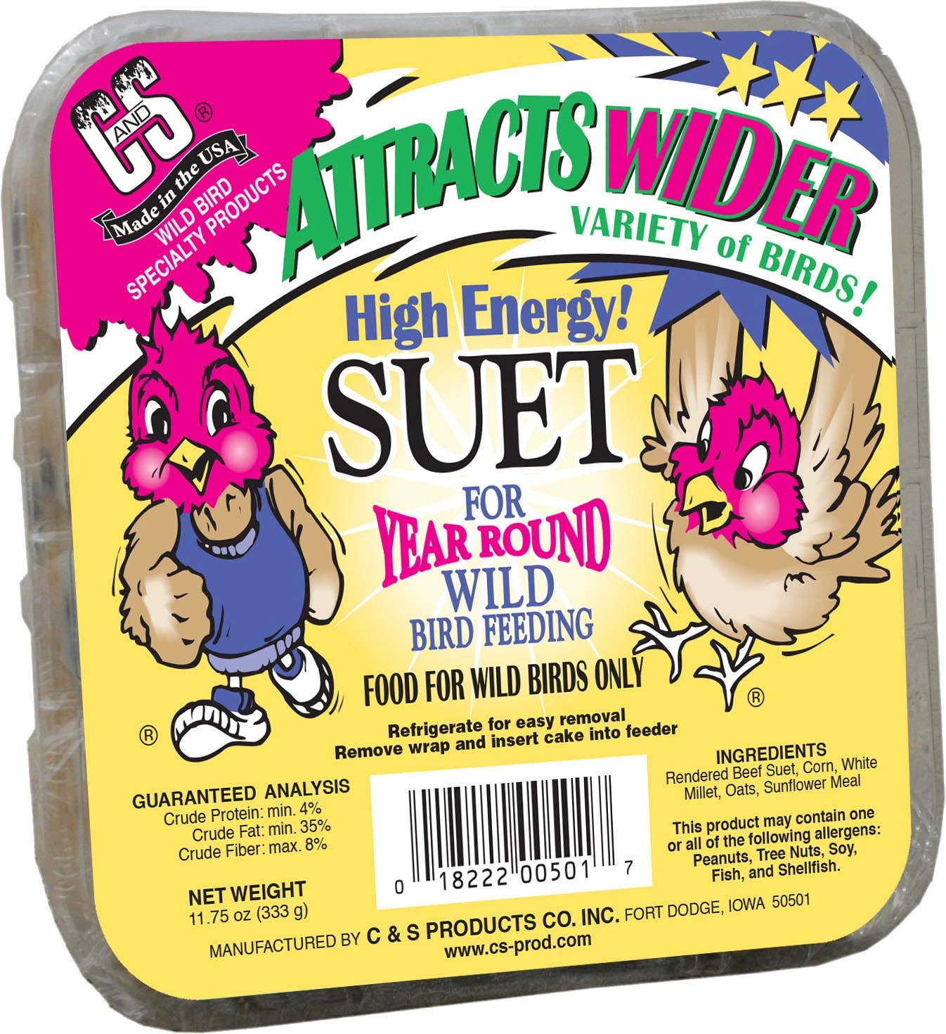 - C&S High Energy Suet will attract a wider range of birds to your backyard buffet which results in success "Year Round" wild bird feeding.