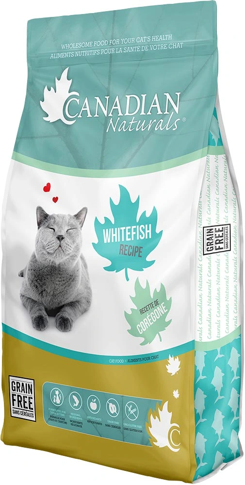 Canadian Naturals is seasoned with a host of herbs and supplements and is designed to meet a cat's nutritional needs from kitten stage through adulthood. Our cat foods are made with fresh chicken, fresh turkey, fresh fish including salmon, herring, trout and whitefish, fresh lamb, fresh Fraser Valley grown fruits and vegetables such as potatoes, carrots, peas, blueberries and apples.