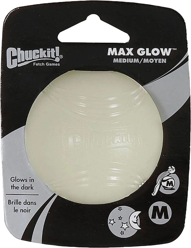Chuckit Max Glow Balls are here to make sure the fun doesn't end when the sun goes down! These balls take just minutes under a light source to provide hours of bright glow time. The Chuckit Max Glow Ball is made with safe, non-toxic glow material, and is virtually indestructible to survive hours and hours of playtime!