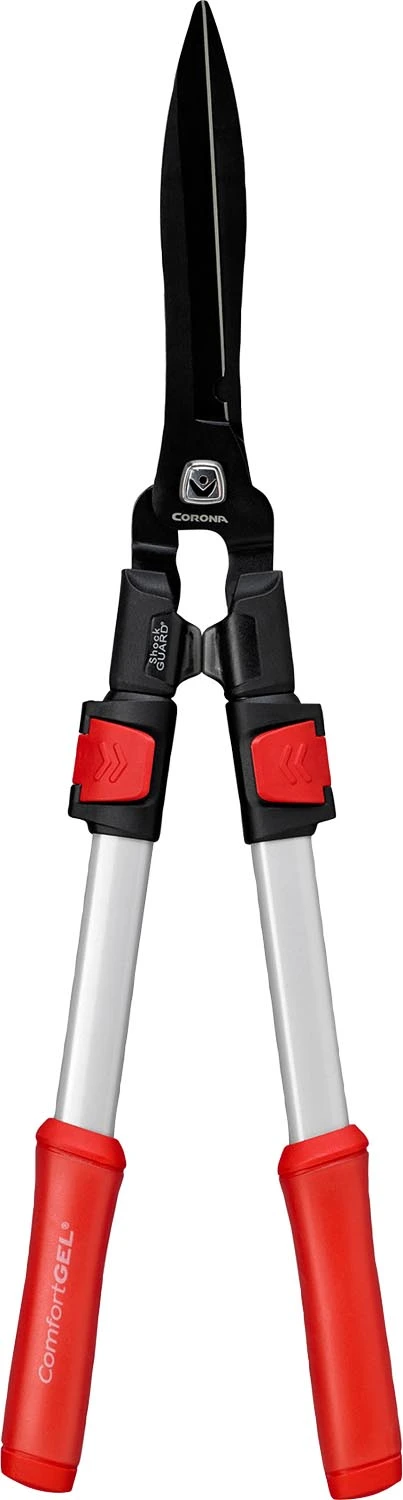 Extendable handle hedge shears with ComfortGEL (r) grips for superior comfort and less hand fatigue