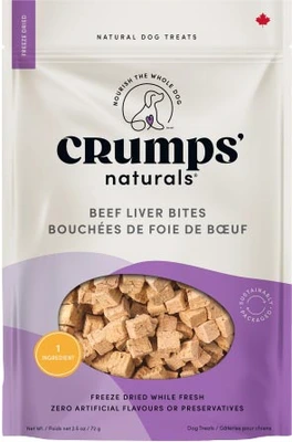 Crumps' Naturals Beef Liver Bites are an exceptionally palatable treat that is high in protein and low in fat. They are made from 100% federally inspected beef liver with no colours, additives or preservatives. Cubed and freeze dried in small, delicious bite sized portions, they make a great training treat.