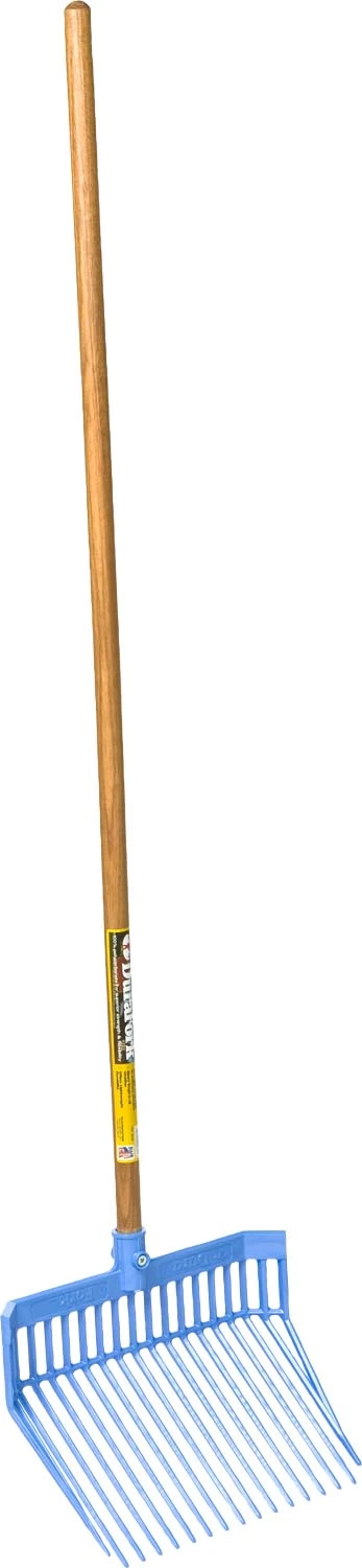DuraForks are ideal stall cleaners with specially designed tines uniquely angled to provide for easy manure pickup without spilling. Fork head is molded from an engineered grade polycarbonate. Sold as eaches.