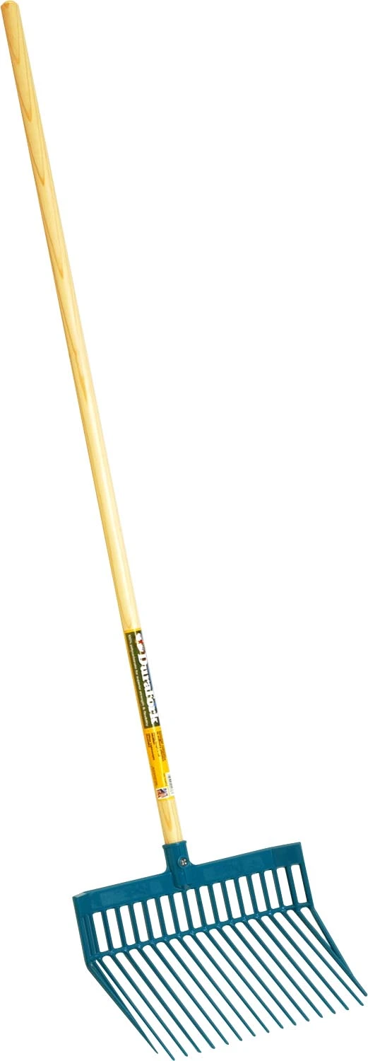 DuraForks are ideal stall cleaners with specially designed tines uniquely angled to provide for easy manure pickup without spilling. Fork head is molded from an engineered grade polycarbonate. Sold as eaches.