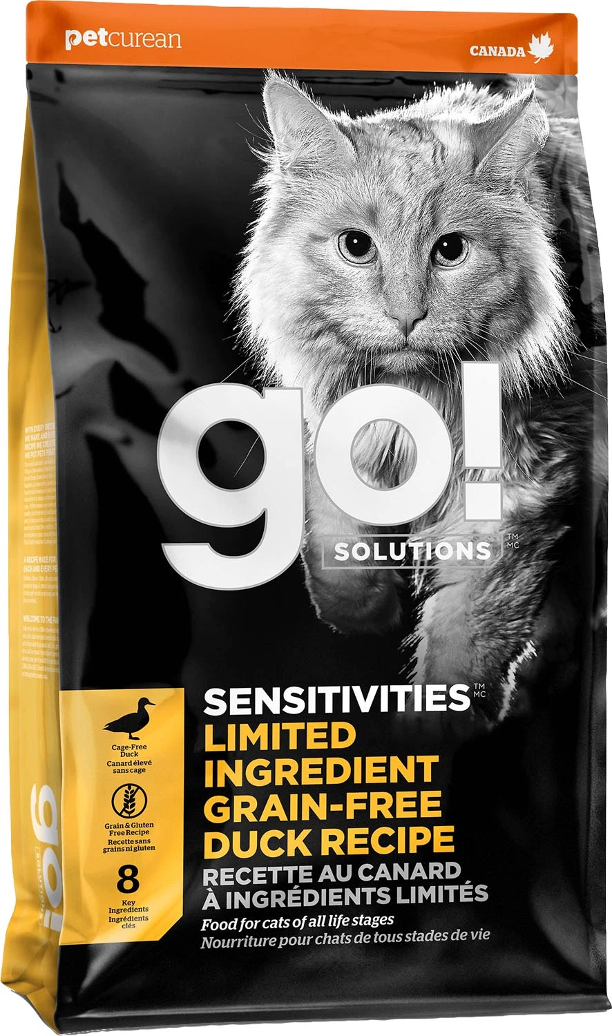 Originally created for cats with specific dietary requirements, and now loved by felines everywhere, our GO! SOLUTIONS SENSITIVITIES recipes are formulated by experts in pet nutrition to provide all the complete and balanced goodness your cat needs, using as few ingredients as possible. Using premium cage-free duck as a single source of tasty poultry protein, GO! SENSITIVITIES Limited Ingredient Grain-Free Duck Recipe is formulated for cats with sensitive dietary needs, with prebiotic fibre for sensitive stomachs, and omega oils for healthy skin and coats.