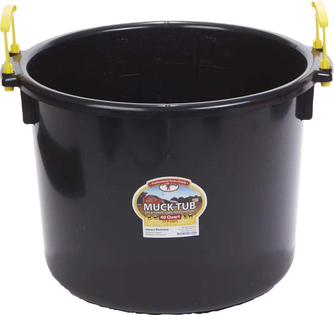 This Muck Bucket features plastic handles. Made of tough polyethylene plastic. Stress and crack resistant.