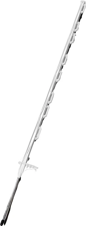 Plastic post with a metal spike, designed for Electric fence wiring usage. 4ft tall, white
