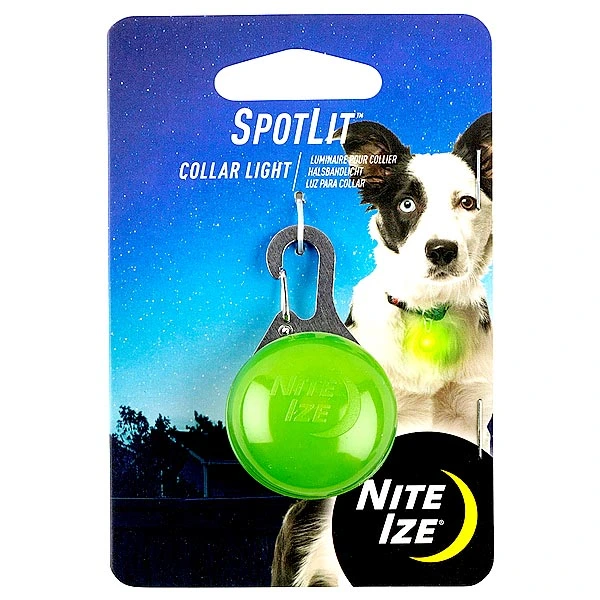 The SpotLit Collar Light makes everything from nighttime walks to camping simpler and safer. Designed for all your adventures, the SpotLit is highly weather-resistant and easily clips onto the D-ring of your pet's collar or harness. Available in a variety of colors, this durable collar light makes it easy to keep track of multiple pets in the dark. A simple push of a button lets you switch from a constant glow mode to an attention-grabbing flashing mode. Replaceable batteries included.