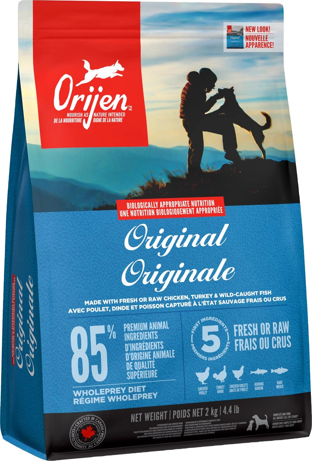 Fresh chicken (25%), raw turkey (8%), fresh chicken giblets (liver, heart) (7%), raw whole herring (6%), raw whole hake (5%), fresh eggs (5%), raw turkey liver (5%), dehydrated chicken (4%), dehydrated turkey (4%), dehydrated mackerel (4%), dehydrated sardine (4%), dehydrated herring (4%), whole red lentils, whole chickpeas, whole peas, chicken fat (3%), whole green lentils, whole pinto beans, whole navy beans, lentil fibre, pollock oil (1%), pea starch, dried kelp, fresh whole pumpkin, fresh whole butternut squash, fresh whole zucchini, fresh whole carrots, fresh whole apples, fresh whole pears, dried chicory root, fresh kale, fresh spinach, fresh beet greens, fresh turnip greens, whole cranberries, whole blueberries, whole saskatoon berries, turmeric, milk thistle, burdock root, lavender, marshmallow root, rosehips.