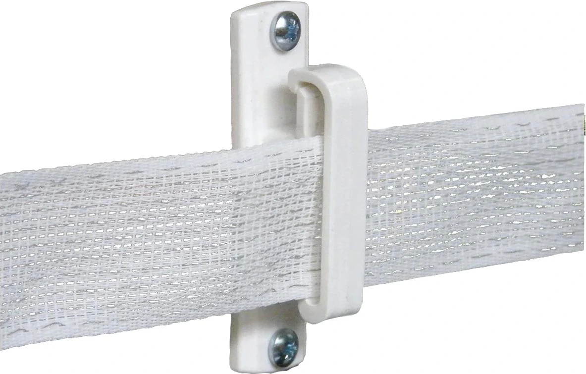 Can be used with metal pipe post. Holds up to 2" wide tape. UV stabilized.