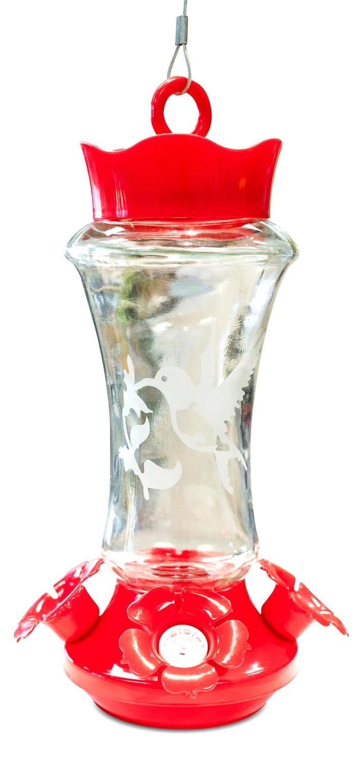 Hummingbird design etched into the side of the glass makes a beautiful feeder to add to the backyard.