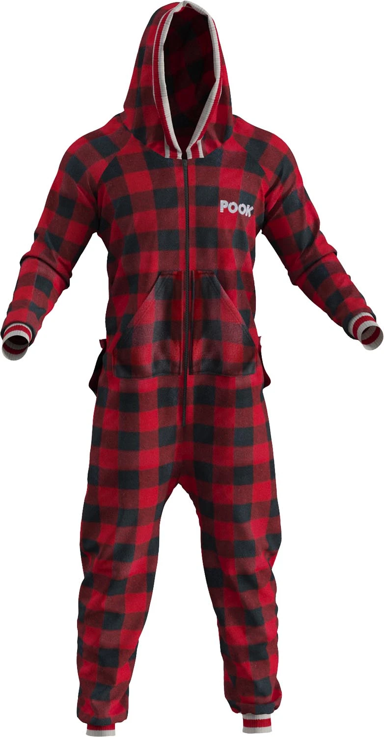 The Pook Onesie is more than pajamas. It's a lifestyle with 100% polar red plaid fleece, an embroidered logo, and form fitted ribbed ankle & wrist cuffs for ultimate comfort.