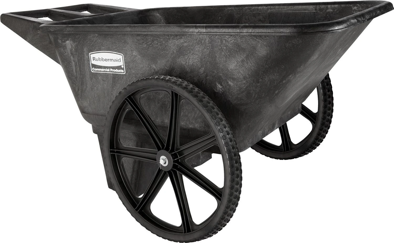 Rubbermaid Big Wheel Farm Cart is a yard cart designed for heavy-duty, long-lasting use. This lawn cart is made of a sturdy, structural foam construction that won't rust, dent, chip or peel. The bucket cart has an all-plastic, seamless pan design that resists leaking and cracking.