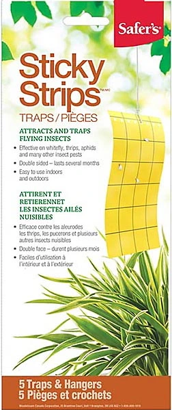 Small flying insect pests are attracted by the unique, colorful plastic of Safer’s Sticky Strips, and stick to the non-drying glue covering the trap. Many insects, particularly Whiteflies, Thrips, Leaf Miners and Aphids can be difficult to control with insecticides. By catching the winged adults with a STICKY STRIPS trap, before they reach the plants, the buildup of pests can be controlled.
