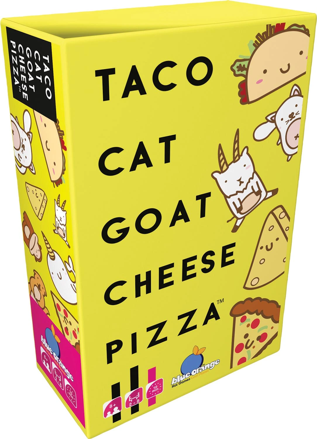 As unique as its name, it's filled to the brim with hand-slapping mayhem! Players place a card from their hand face up in a central pile while saying taco/cat/goat/cheese/pizza in player sequence. When the card matches the mantra, be the first to slap your hand on the discard pile. The last to slap gets the "privilege" of picking up all the cards (not a good thing). The winner is the first player to discard their entire hand.