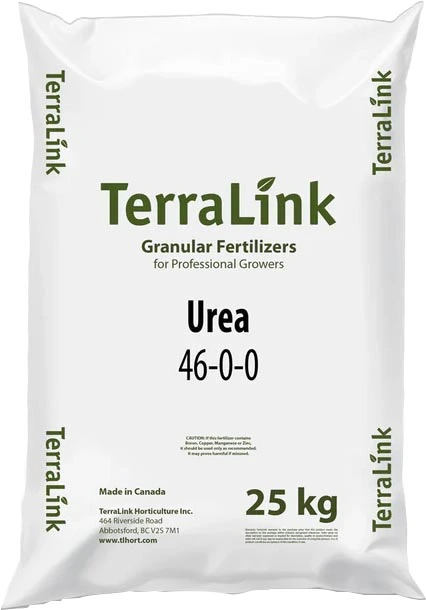 Urea provides the highest percent of nitrogen fertilizer, at 46%. The least expensive form of nitrogen, it is used as an ingredient in blends or for heavy feeding crops.