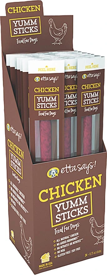 YUMM Meat Sticks are a tasty, protein rich snack that is sure to bring excitement to snack-time. Etta Says! sources the highest quality human-grade ingredients and individually wraps each stick to ensure freshness. Real Chicken is the #1 ingredient and it is crafted with No Nitrates, Nitrites or MSG. It is made with the highest quality ingredients.