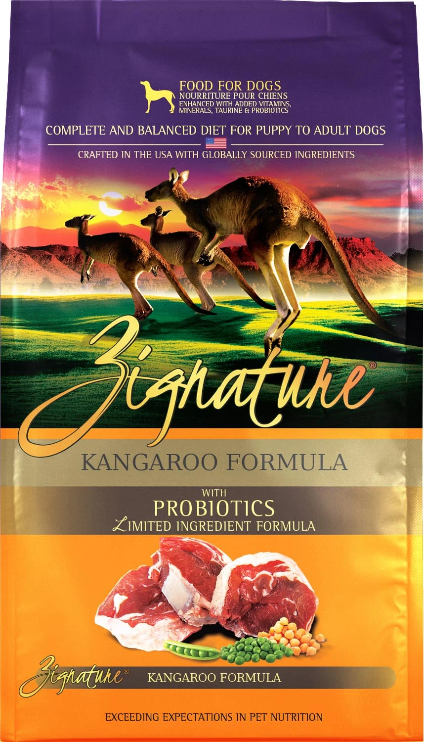 Kangaroo, Kangaroo Meal, Peas, Pea Flour, Chickpeas, Sunflower Oil, Flaxseed, Dehydrated Alfalfa Meal, Lentils, Natural Flavor, Pea Protein, Calcium Carbonate, Salt, Choline Chloride, Vitamins (Vitamin E Supplement, Vitamin A Supplement, Niacinamide, d-Calcium Pantothenate, Riboflavin, Vitamin D3 Supplement, Thiamine Mononitrate, Vitamin B12 Supplement, Pyridoxine Hydrochloride, Folic Acid, Biotin), Taurine, Minerals (Zinc Proteinate, Iron Proteinate, Potassium Chloride, Copper Proteinate, Sodium Selenite, Manganese Proteinate, Calcium Iodate), Mixed Tocopherols (Preservative), L-Carnitine, Rosemary Extract, Dried Bacillus Coagulans Fermentation Product, Dried Bacillus Subtilis Fermentation Product, Dried Bifidobacterium Bifidum Fermentation Product.